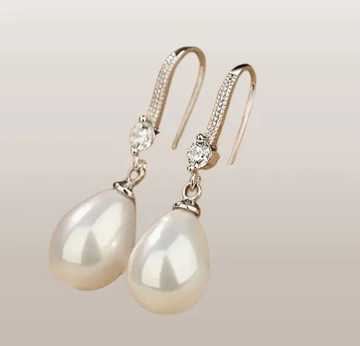 Suure pärli ja tsirkooniga rippuvad kõrvarõngad